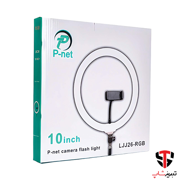 پی نت مدل LJJ26 RGB رینگ لایت با قطر 26 سانتی متر و دارای رنگ های آفتابی ، مهتابی و همچنین با قابلیت تنظیم 7 رنگ RGB مناسب عکاسی پرتره و مدلینگ،ساخت ویدئو کلیپ های جذاب و حتی Light Painting یا نقاشی با نور است.