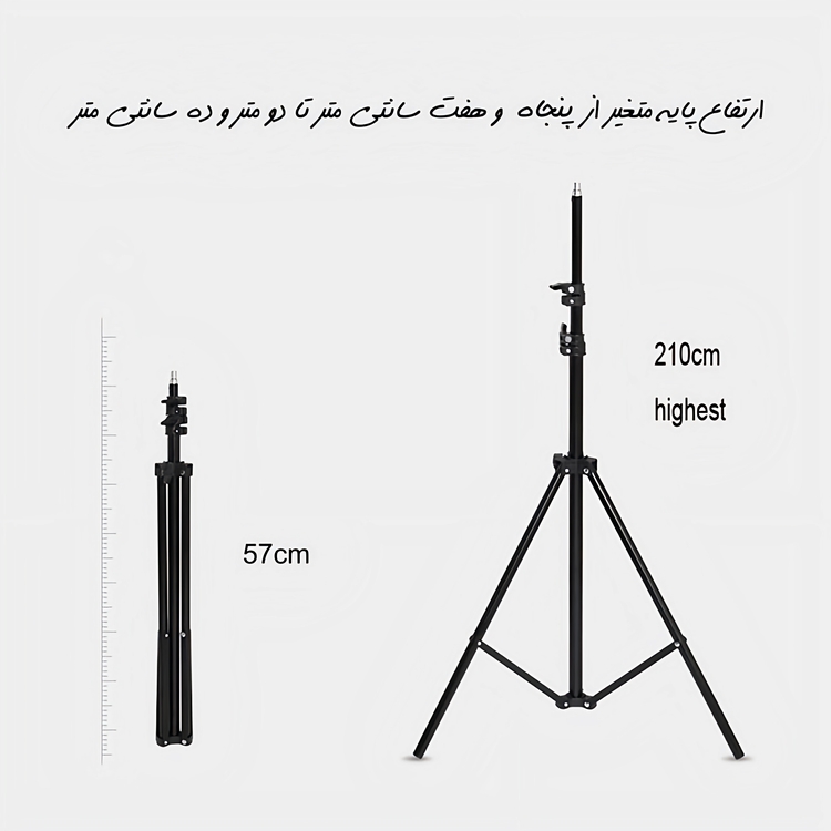 همراه این رینگ لایت یک عدد هولدر موبایل قابل انعطاف و یک عدد سه پایه به ارتفاع دو متر ارائه می گرد.