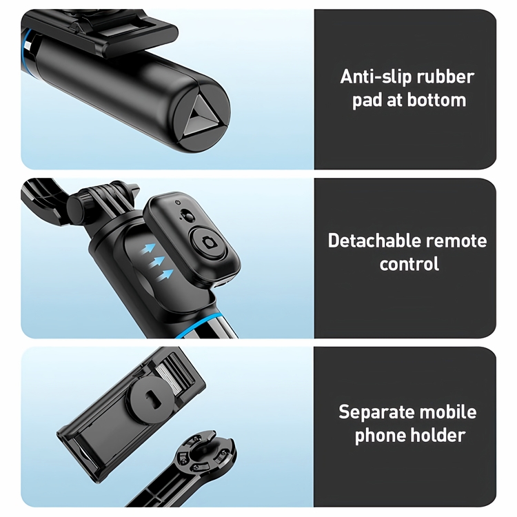 مونوپاد حرفه ای ترانیو C01 مجهز به یک ریموت کنترل است که به شما اجازه میدهد تا از راه دور عکس بگیرید و ویدئو ضبط کنید.