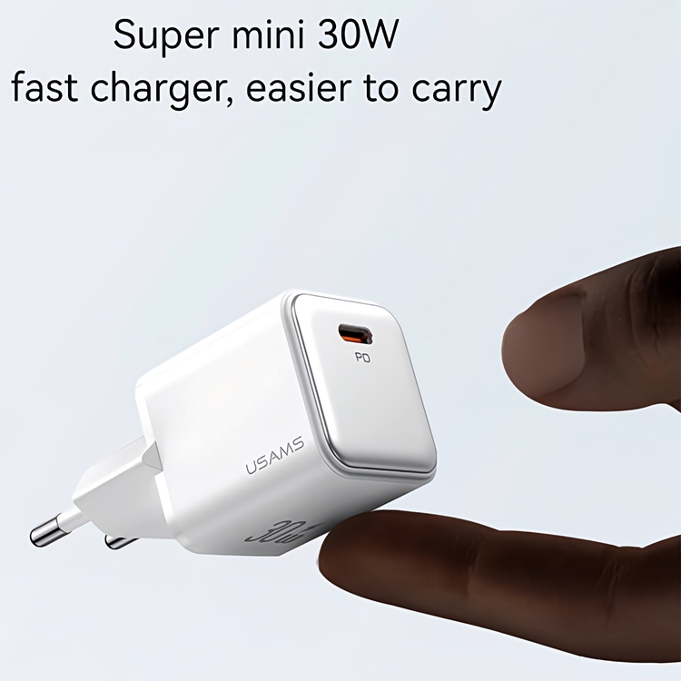 شارژر دیواری یوسمز مدل US-CC186 یک شارژر کوچک و سبک از برند Usams با توان 30 وات است که از فناوری شارژ سریع PD (Power Delivery) پشتیبانی میکند.