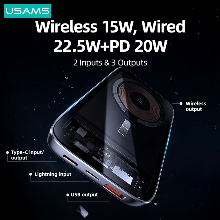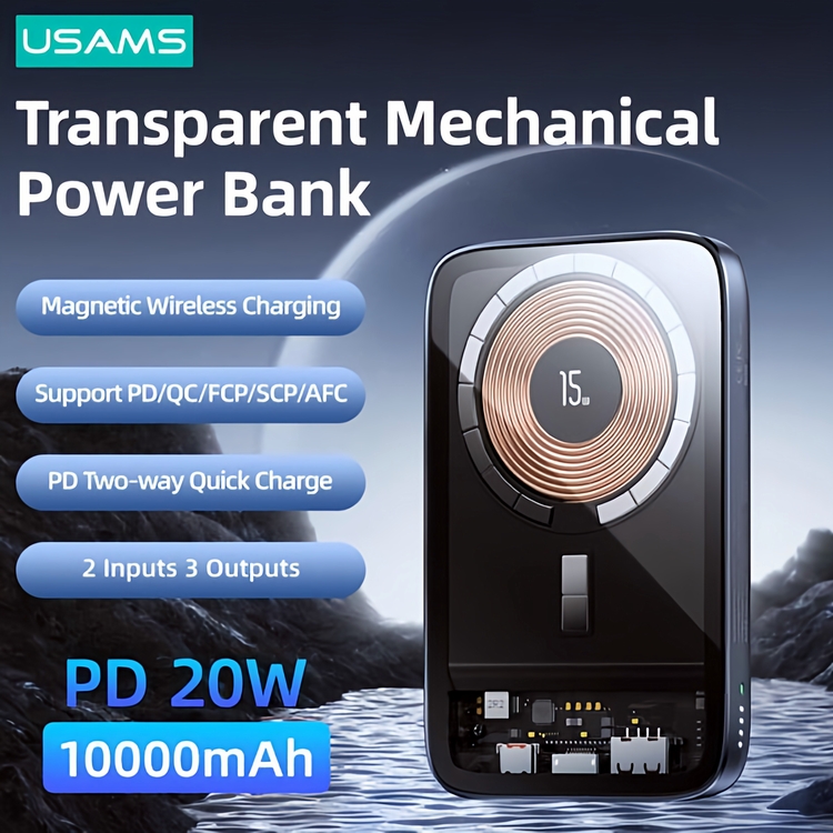 پاوربانک وایرلس شفاف یوسمز با وزن حدود 230 گرمی خود و با توجه به ظرفیت 10000 میلی آمپری که دارد یک پاوربانک فوق العاد خوش دست می باشد.