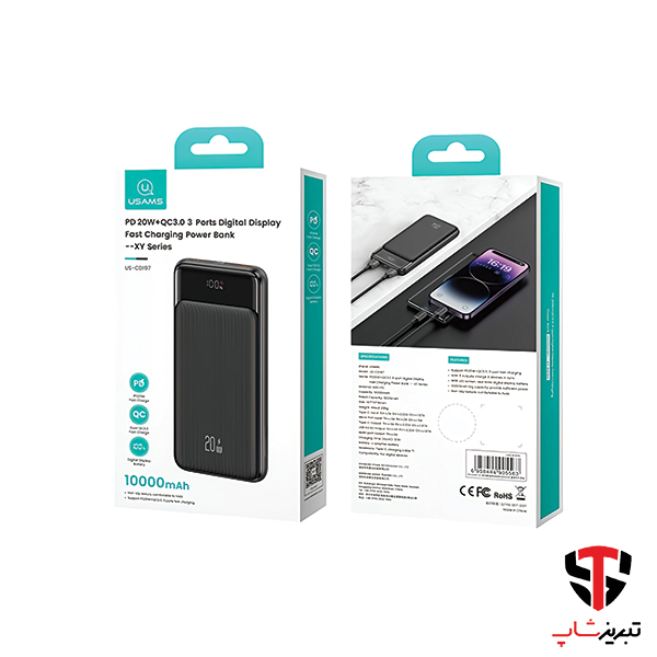 یوسمز مدل CD197 با ظرفیت 10000 میلی آمپر یک پاور بانک فست شارژ 20 واتی از برند یوسمز یکی از گزینههای مناسب برای افرادی است که به دنبال یک منبع انرژی قابل حمل و با سرعت شارژ بالا هستند.