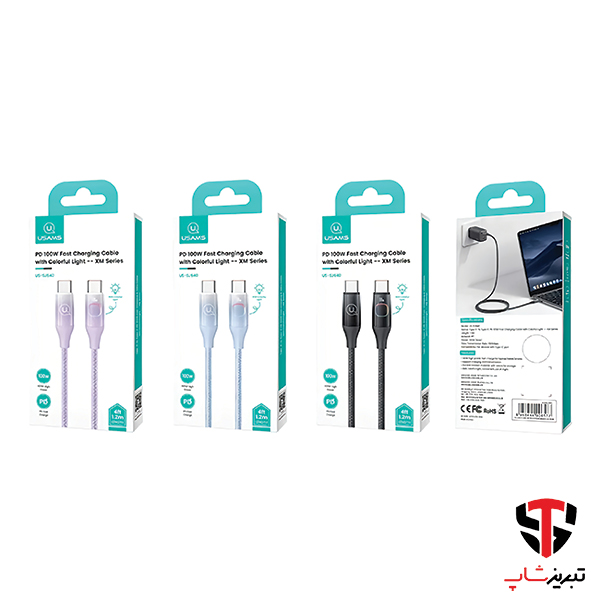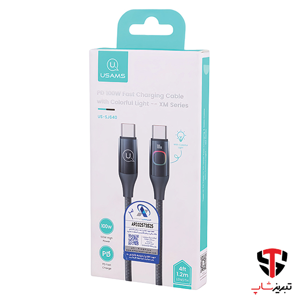 یوسمز مدل SJ640 به طول 1.2متر یک کابل شارژ دو سر تایپ سی با قابلیت PD با 100 وات حداکثر توان خروجی است.
